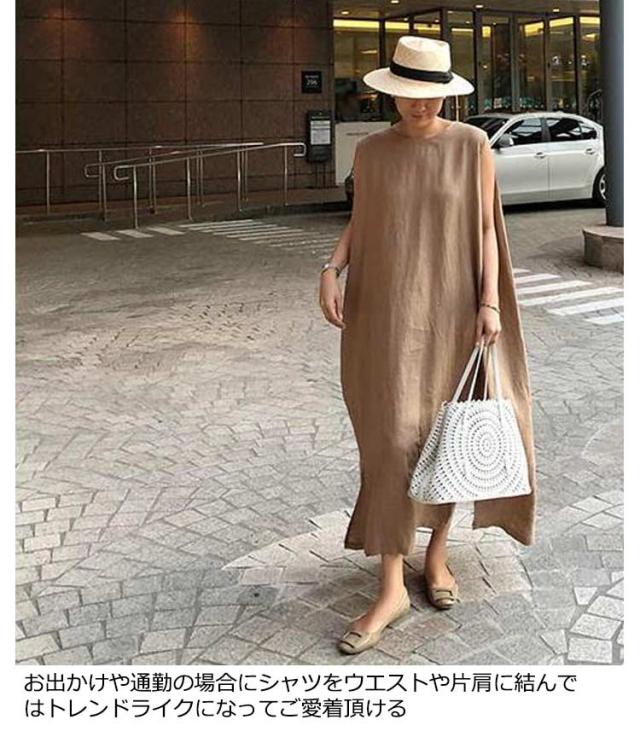 | 爽やかで清涼感のある綿麻混素材は、真夏にもストレスフリーに着られるノースリーブワンピースが新登場。 通気性良いリネン素材で、蒸し暑くなく、楽に夏を過ごせます。 すとんと落ち感のあるシルエットで、裾にかけてフレアシルエットになっているので、ラインを拾いにくく綺麗な見え感に。 お出かけや通勤の場合にシャツをウエストや片肩に結んではトレンドライクになってご愛着頂ける | |
