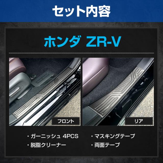 ZR-V 専用 スカッフプレートガーニッシュ [4PCS] 高品質ステンレス採用 カーボン調 ガーニッシュ カスタム パーツ アクセサリー ドレスアップ ホンダ[2]