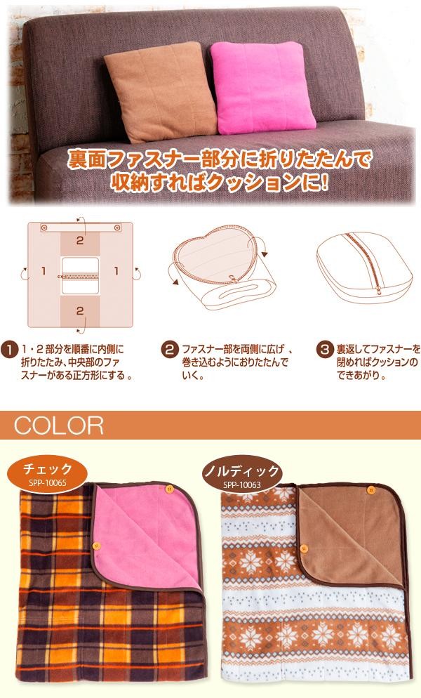 | さむ〜い冬は普段着の上にもう1枚!!熱反射アルミ層が体温を反射させ、保温生地でしっかり保温します!!裏面ファスナー部分に折りたたんで収納すれば、クッションに!! |