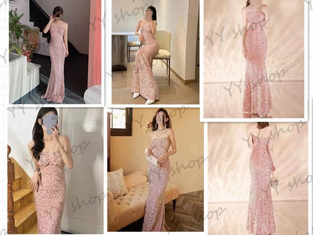 高品質 マーメイドライン ロングドレス パーティドレス ナイトドレス ワンピ ホルターネック ピンク 緑 結婚式 二次会 発表会 撮影 D144