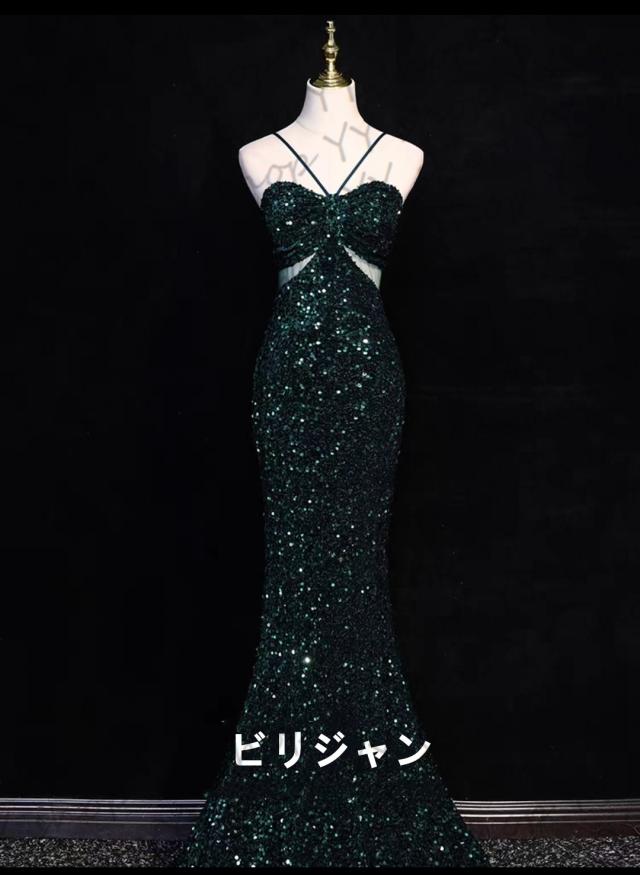 マーメイドライン&スパンコール生地◎エレガントなオーラを放つ。女性なら誰でも一度はあこがれる印象を与えます。