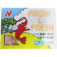 養殖池から活きたまま工場に搬送したえびのみを使用しており、鮮度(頭がしっかり・変色がありません)、鮮やかな発色、もちもちした食感が特徴の商品です。サラダ、カクテルシュリンプなど、メニューに鮮やかな彩を加えます。