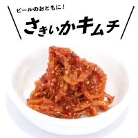 自社オリジナルのキムチタレをたっぷり絡ませた絶品キムチ味のさきいかです。程よい辛さに奥深い甘みと旨みがたまりません。