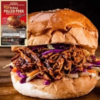 じっくり火を通してやわらかく煮込んでほぐした豚肉に、ハインツのケチャップとリーペリンソースで仕上げたアメリカで王道のクラシックタイプのBBQソースとケイジャン風味のスパイスをブレンドし絡めました。湯煎や冷凍解凍後すぐにご使用頂けます。バーガー、ピザ、サンド、ライス等の具材、ポテトのトッピング等に最適です。