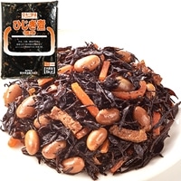 大豆、人参、油あげ入りの、具だくさんで食感が楽しめるひじきの煮物です。昆布と鰹の旨みを効かせて甘めの味付けに煮含めました。