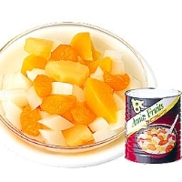 ひし形にカットした杏仁豆腐に、みかん、パイン、黄桃の3種のフルーツがミックスされており、そのまま提供することで彩りのよいデザートになります。【規格】・内容量:3000G・固形量:1950G