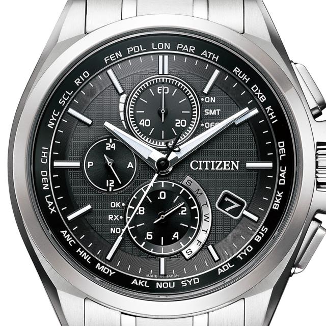 シチズンの技術の粋をつぎ込んだアテッサ。わずかな光でも動き続ける「光発電エコ・ドライブ」や、日本、中国、アメリカ、ヨーロッパの世界4エリアの電波送信所から送信される標準電波の受信に対応している「電波時計(ワールドタイム)」など、過酷な環境に耐えうるハイスペックな機能を搭載。素材は、キズに強く、軽く、肌にやさしく、さらにサビにくい「スーパーチタニウム™」を採用しています。