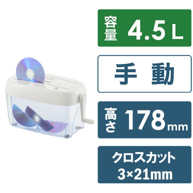 オーム電機 ハンドクロスカットシュレッダー 大容量タイプ ホワイト [クロスカット /A4サイズ /CDカット対応] HS-C230-W