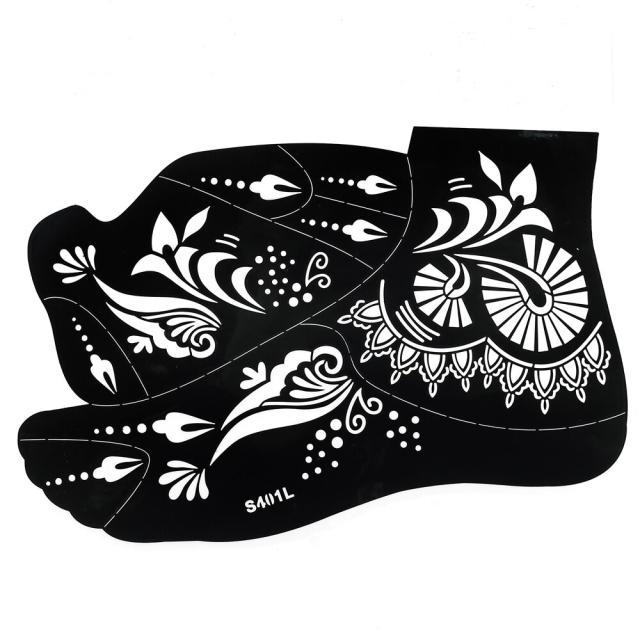 足の甲にフェイクタトゥーを簡単に描けるヘナタトゥー用のステンシルシートステッカーです。