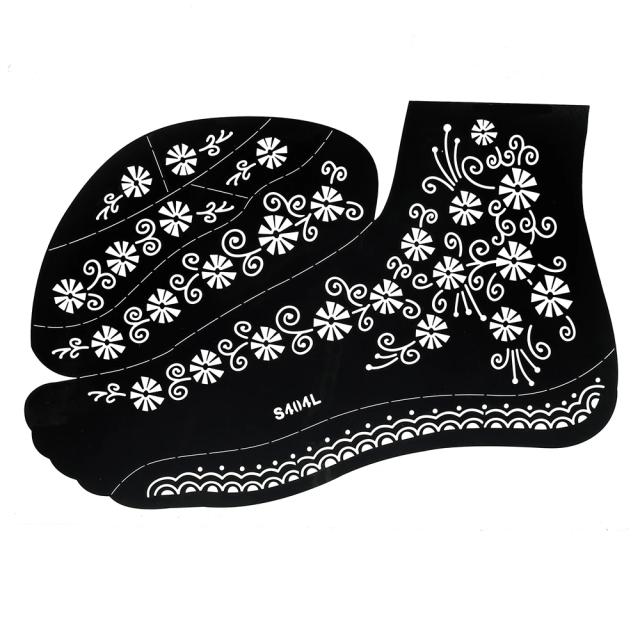 足の甲にフェイクタトゥーを簡単に描けるヘナタトゥー用のステンシルシートステッカーです。