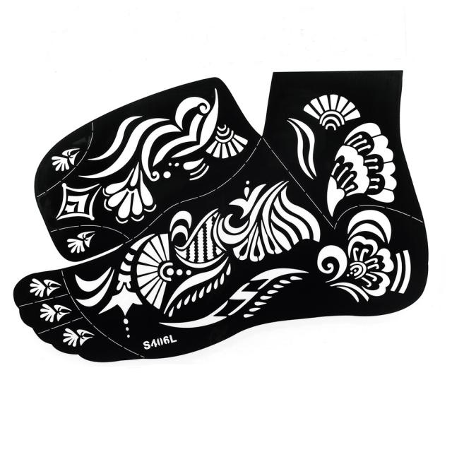 足の甲にフェイクタトゥーを簡単に描けるヘナタトゥー用のステンシルシートステッカーです。