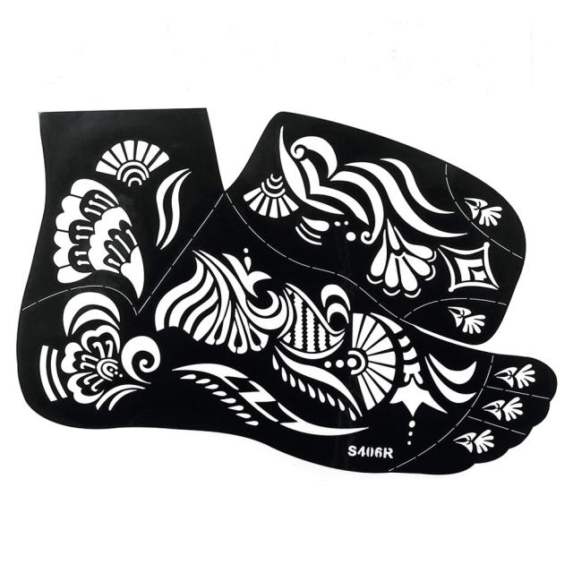 足の甲にフェイクタトゥーを簡単に描けるヘナタトゥー用のステンシルシートステッカーです。