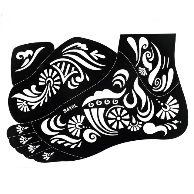 足の甲にフェイクタトゥーを簡単に描けるヘナタトゥー用のステンシルシートステッカーです。