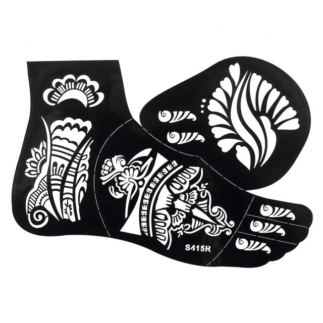 足の甲にフェイクタトゥーを簡単に描けるヘナタトゥー用のステンシルシートステッカーです。