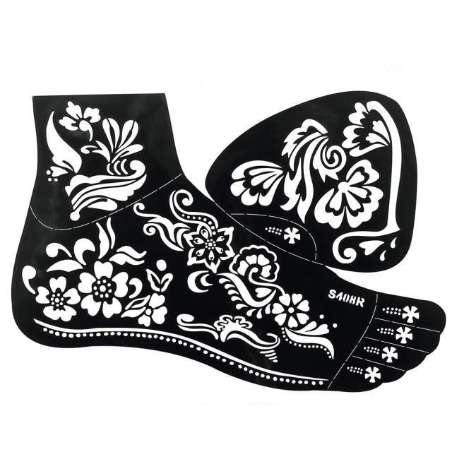 足の甲にフェイクタトゥーを簡単に描けるヘナタトゥー用のステンシルシートステッカーです。