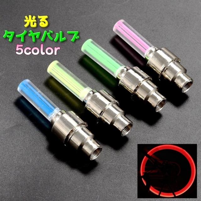 タイヤバルブ エアバルブ 自転車 同色2個セット 前後セット オートバイ 自転車アクセサリー 光る バルブ キャップ ライト ホ