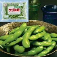 安心、安全の台湾産えだ豆です。粒が大きく、莢色も濃く緑鮮やかな品種を使用しました。わさびソースに漬け込み、しっかりとしたわさびの風味に味つけした新しいフレーバーの枝豆です。