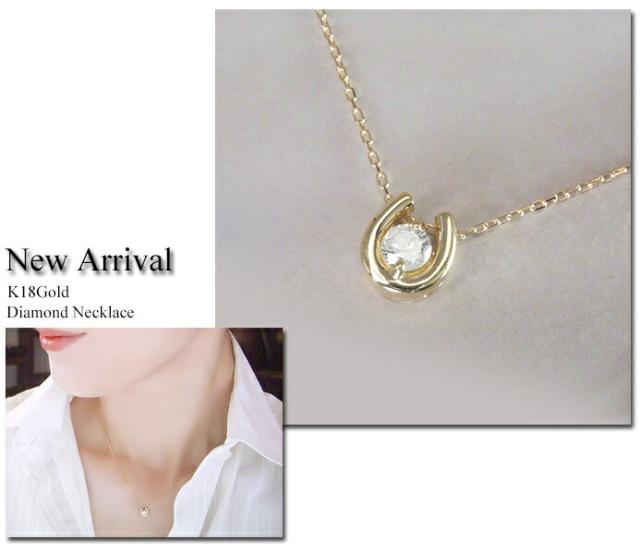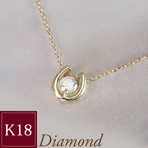 ネックレス レディース 18k 18金 k18 天然 ダイヤモンド 幸運 ホースシュー 一粒 0.1カラット 馬蹄 品番ma-0367 2営業日前後の発送予定