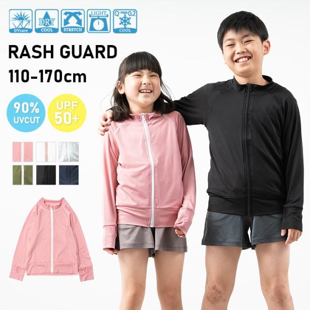 ラッシュガード キッズ 上下セット 女の子 男の子 長袖 フード無し スクール 中学校 小学校 かわいい おしゃれ 接触冷感 upf50+ uv 軽量 吸水速乾 ストレッチ 指穴付き 薄手 ジップ 軽量 日焼け対策 無地 春 夏 110cm 120cm 130cm 140cm 150cm 160cm メール便送料無料