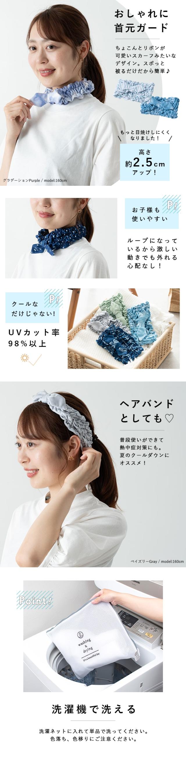 ヘアバンドとしても使えて、夏の熱中症予防としてもおすすめ。