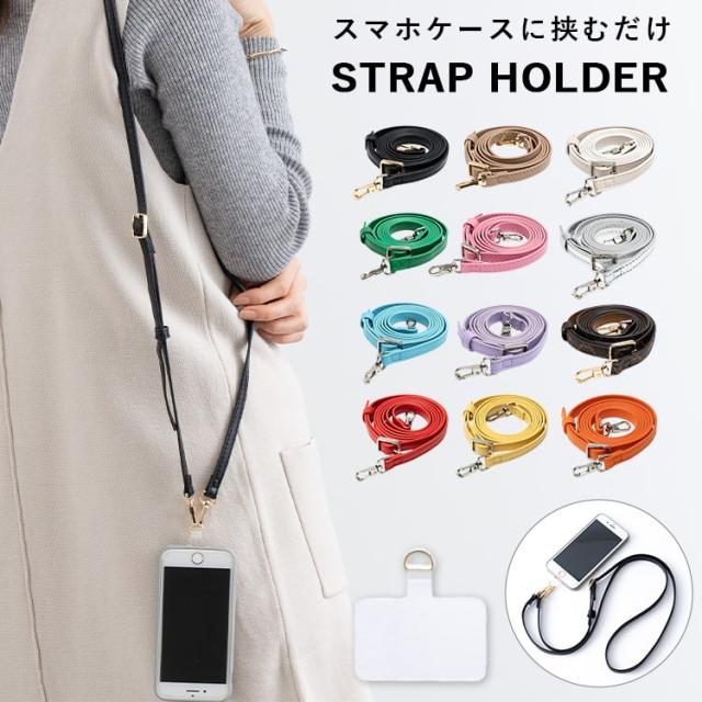スマホケースに透明ホルダーを挟むだけで、スマホが簡単に肩や首から掛けられる♪