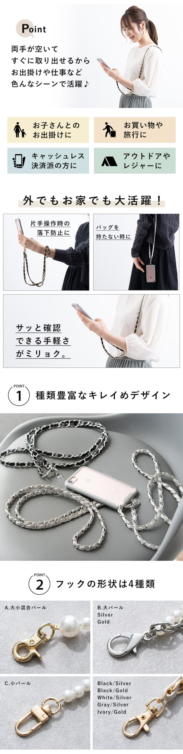 スマホショルダー ストラップ 紐 挟む パール チェーン iphone android おしゃれ 大人 かわいい 肩掛け 斜め掛け ネックストラップ プレゼント ギフト メール便送料無料