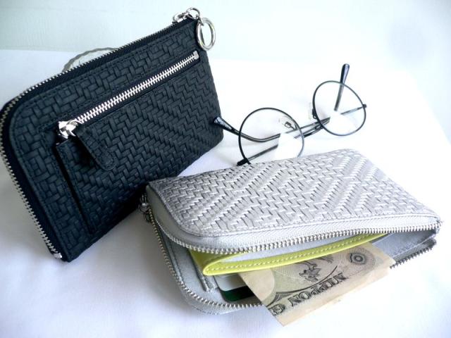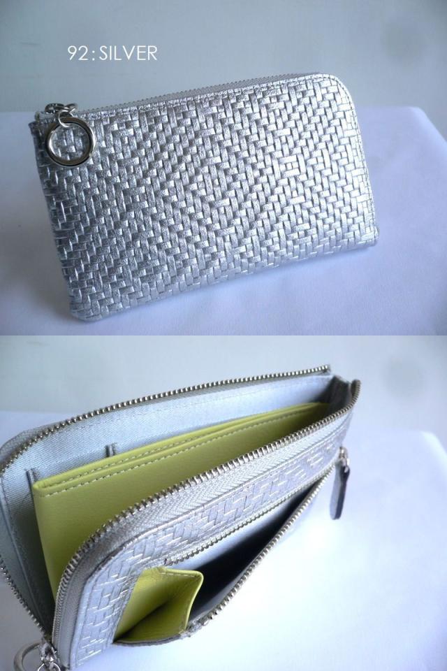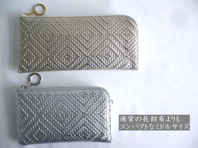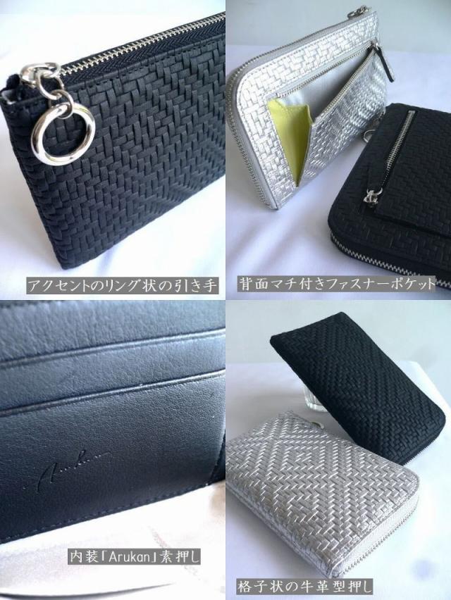 ノベルティ ARUKAN アルカン ミドル L字ファスナー 折り財布 メッシュ型押し レザー パネロ 1412-709(旧1411-704) シルバー/ゴールド/ブラック