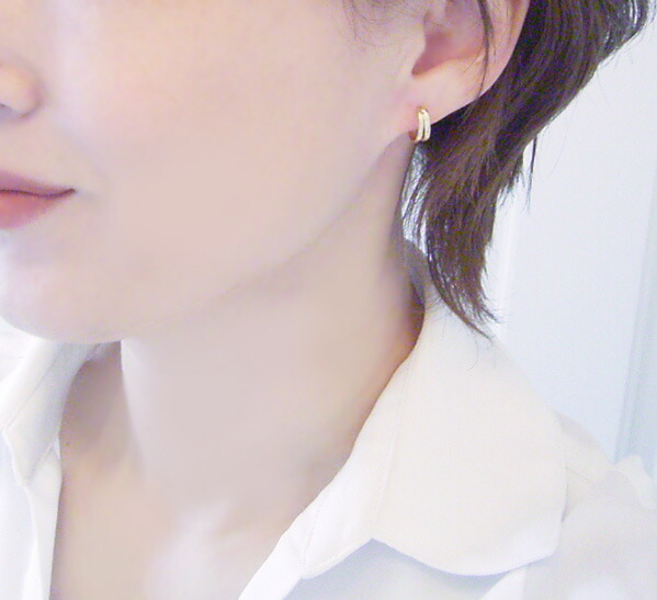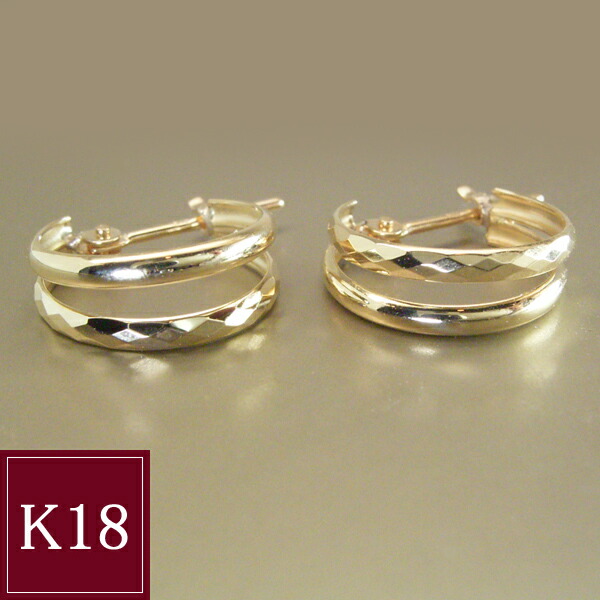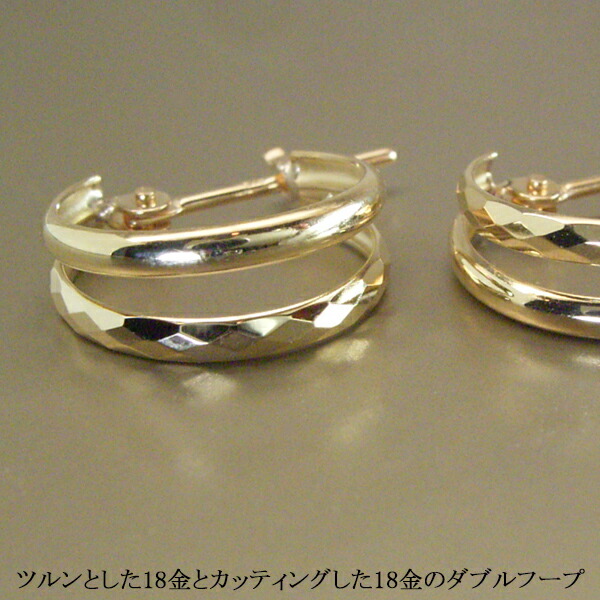 技ありのカッティング!上質18金ゴールドでデザインしたフープピアスが新登場!ツルンとした18金とカッティングした18金のダブルフープ。 キラキラと輝くようにカッティングした職人技が◎上品で清楚、かつ存在感もあるこだわりの逸品です!
