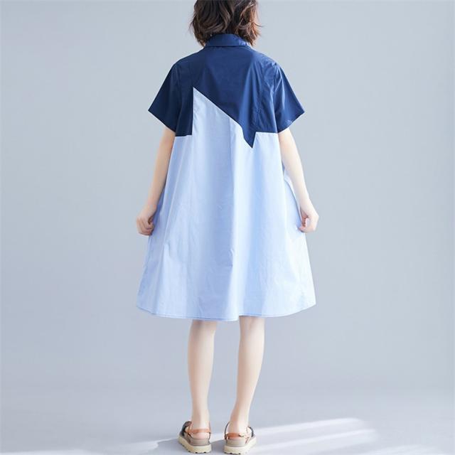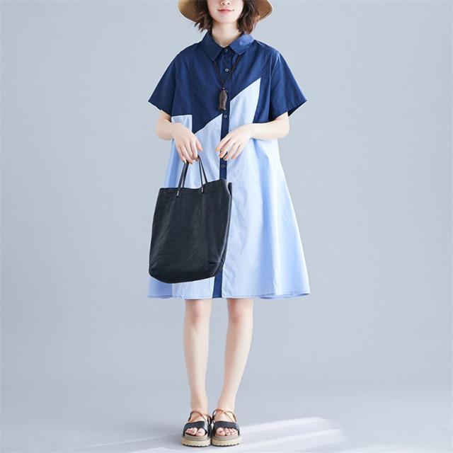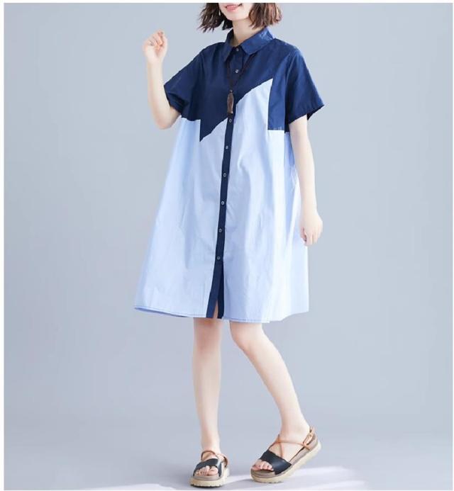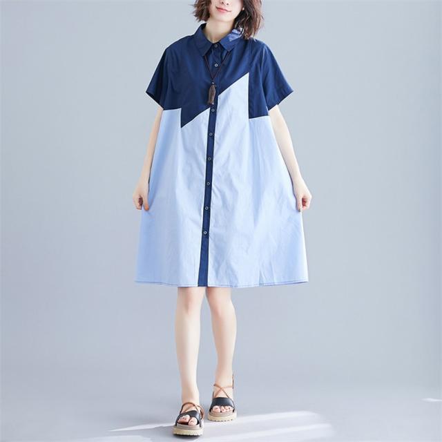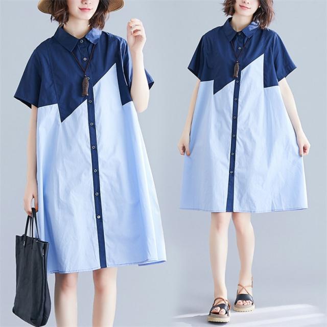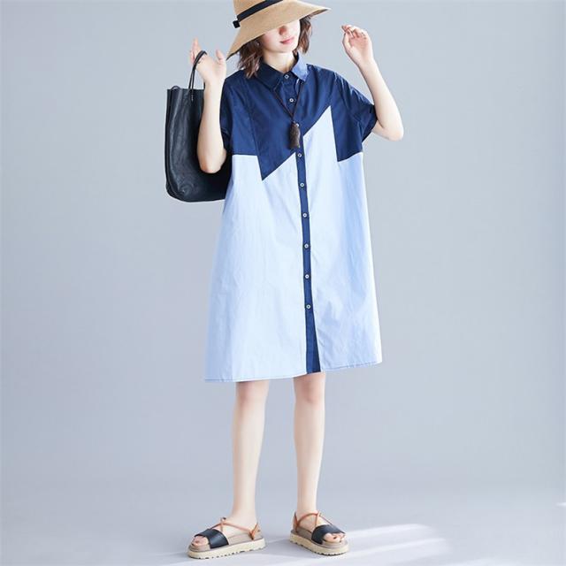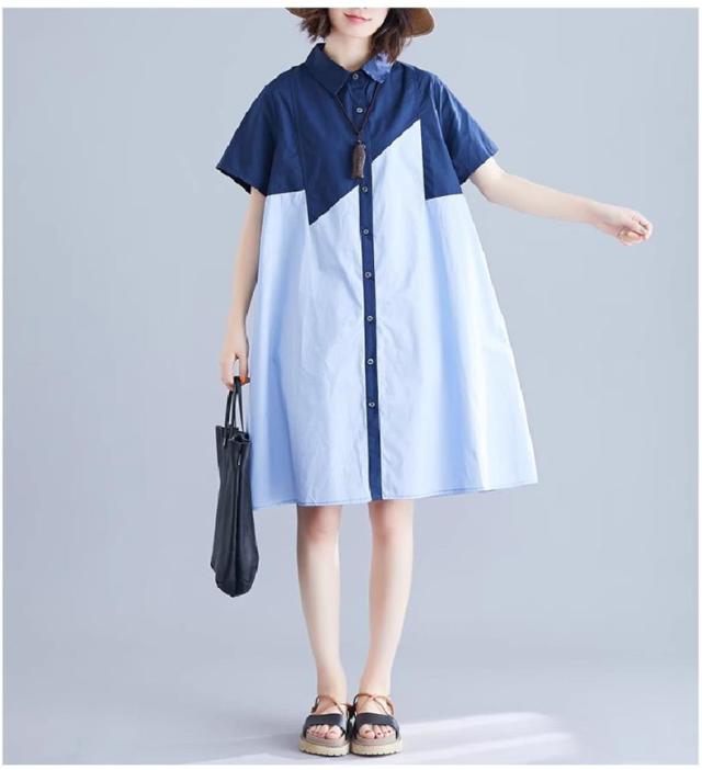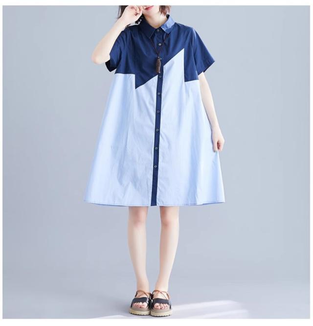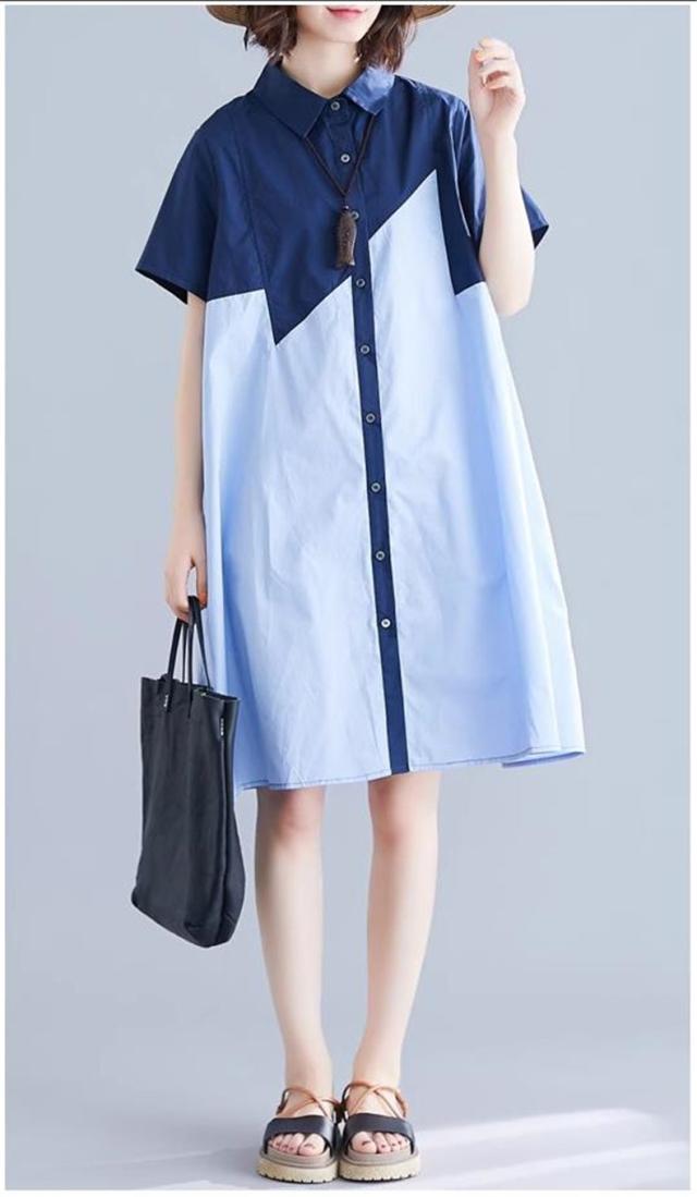 シャツワンピース レディース 切り替え ロングシャツ ゆったりシルエット ボタン留め 半袖 上品でエレガント 旬スタイル 大人可愛い
