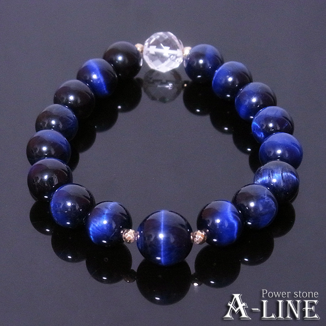 金運UPに世界的金運石のオーシャンブルータイガーアイ12mmを中央に、10mmと68面カット水晶を使用したブレス!AAAグレードの高品質石を使用!