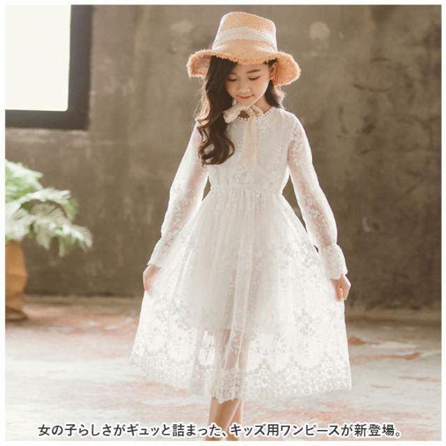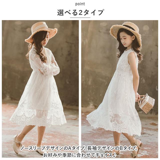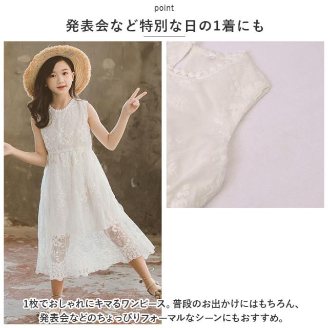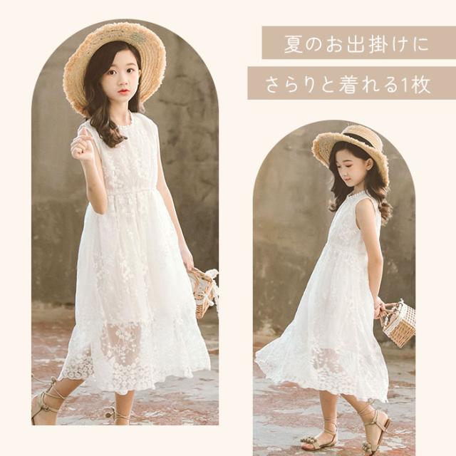 キッズ ワンピース 夏 通販 キッズワンピ 夏 春 子供 子ども サマードレス 子供服 女の子 白 ホワイト 白ワンピース ギャザーワンピース フレアワンピース ノースリーブ レース