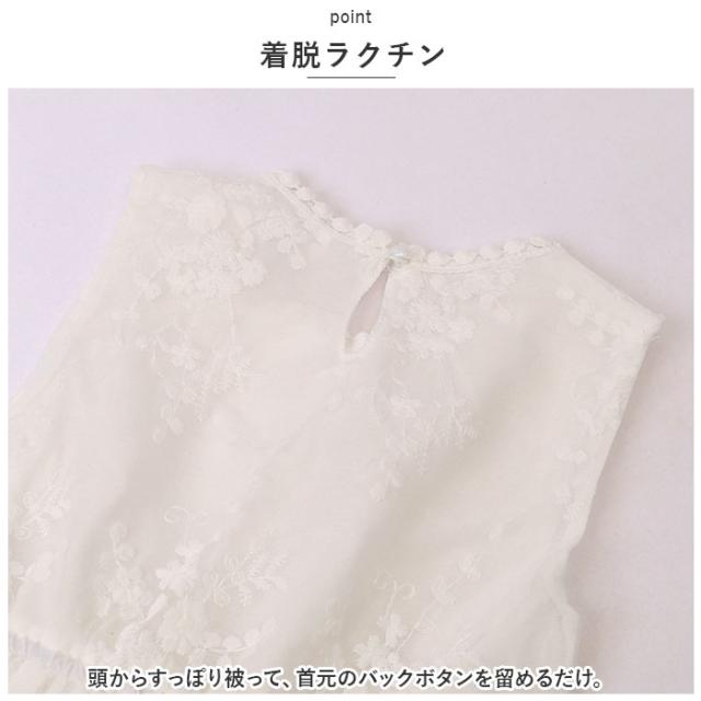 | 商品説明 | ・女の子らしさがギュッと詰まった、キッズ用ワンピースが新登場。 【清楚なホワイトカラー】 ・涼しげで上品な雰囲気を演出する、オールホワイトカラー♪(※裏地付きですが透け感があるため、お手持ちのペチコートなどを着用することをおすすめします。) 【可愛いフラワー刺繍】 ・透け感のある素材全体に施された、繊細なお花モチーフの刺繍がポイント。大人顔負けのおしゃれなデザイン! 【ふんわりAラインシルエット】 ・歩くたびにふわっと広がり、エアリー感のある優しい印象に♪ 【ストレスフリーな着心地】 ・ウエスト部分にゴム入り。締めつけ感がなく心地よいフィット感◎ 【着脱ラクチン】 ・頭からすっぽり被って、首元のバックボタンを留めるだけ。 【選べる2タイプ】 ・ノースリーブデザインのAタイプ、長袖デザインのBタイプ。お好みや季節に合わせてチョイス♪ 【発表会など特別な日の1着にも】 ・1枚でおしゃれにキマるワンピース。普段のお出かけにはもちろん、発表会などのちょっぴりフォーマルなシーンにもおすすめ。 |
