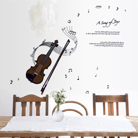 ウォールステッカー バイオリン 音符 インテリア 壁紙シール 自己粘着 英字 楽器 クラシカル 五線譜 音楽 教室 学校 マンション 病院