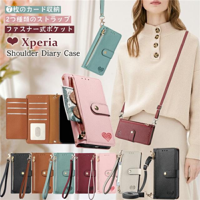 Xperia10VII 1VII 10VI 1V 携帯ケース ショルダー 手帳型 コインケース付き エクスペリア 5 10 1 IV ACE 5 III スマホケース ショルダー SONY Xperia5IV 10III 10IV 5G 手帳型ケース スマホショルダー ハンドストラップ かわいい ハート柄 おしゃれ 大人女子 RFID