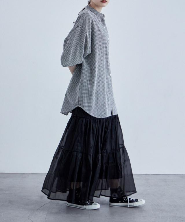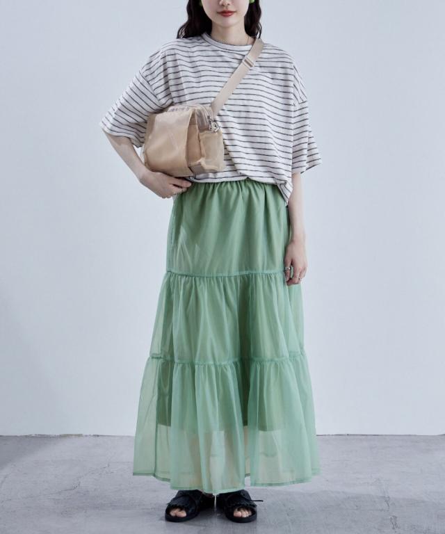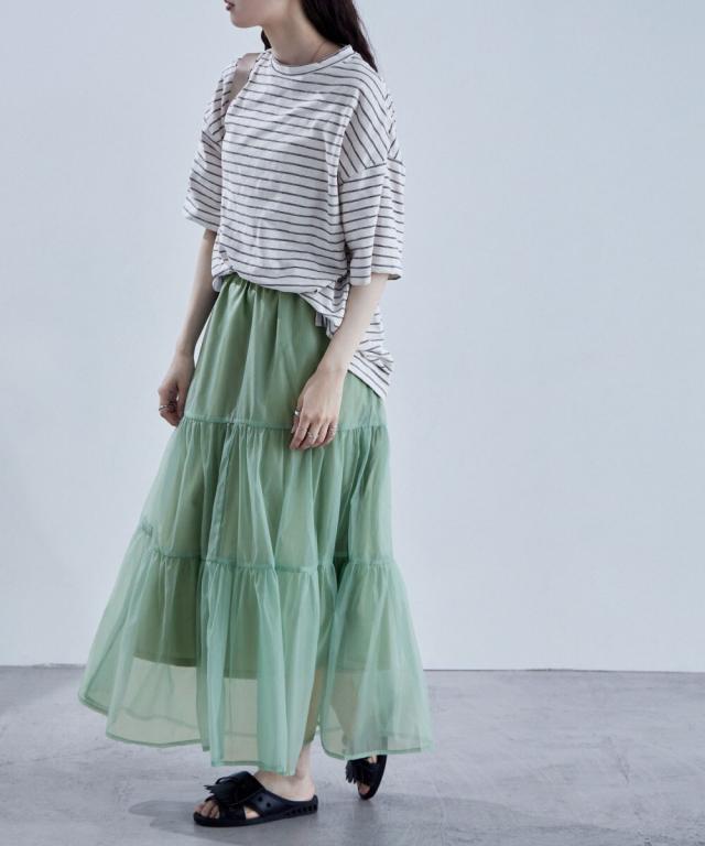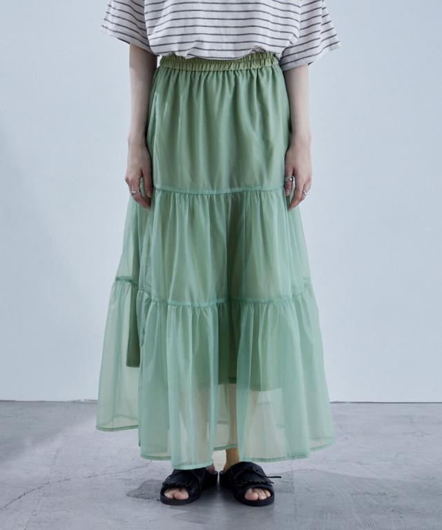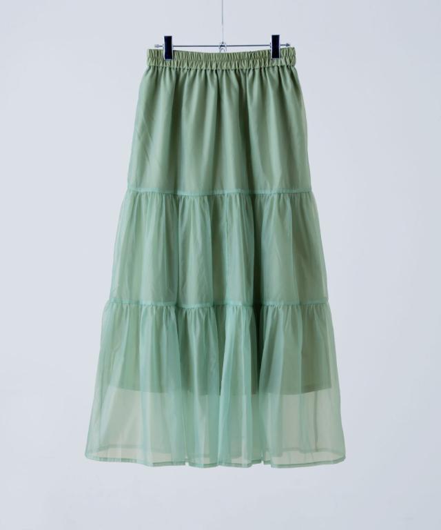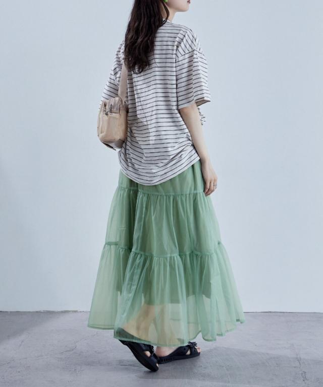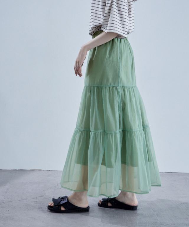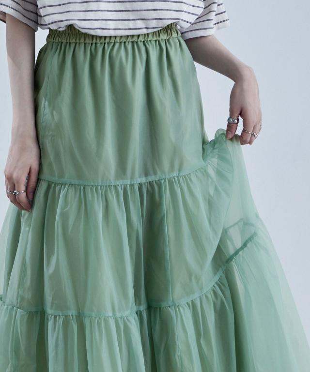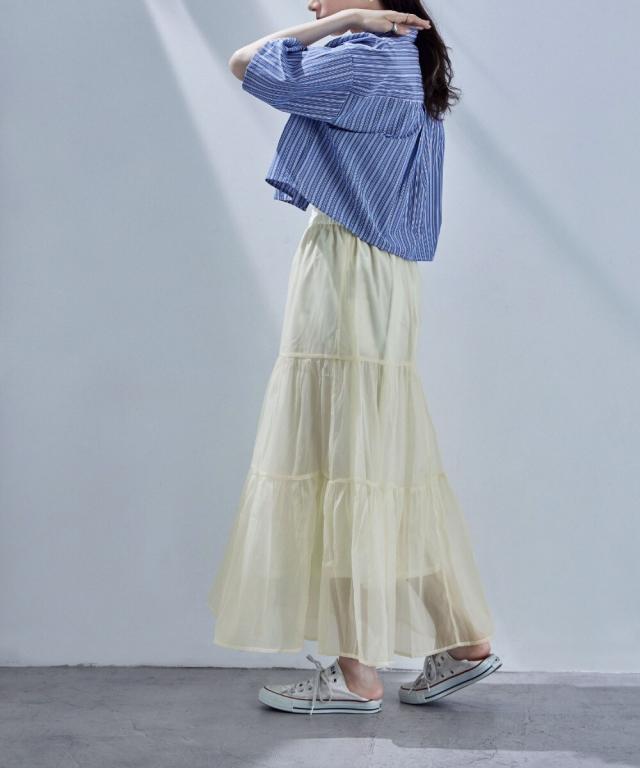 目をひく透明感と涼感のあるオーガンジーを組み合わせたスカート。