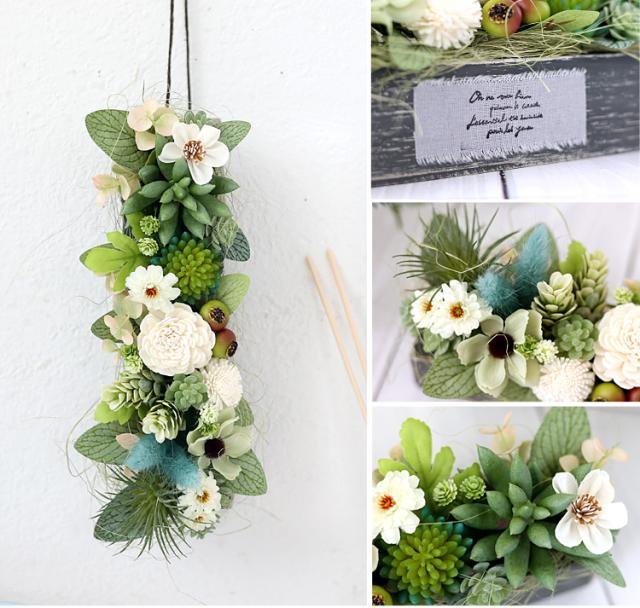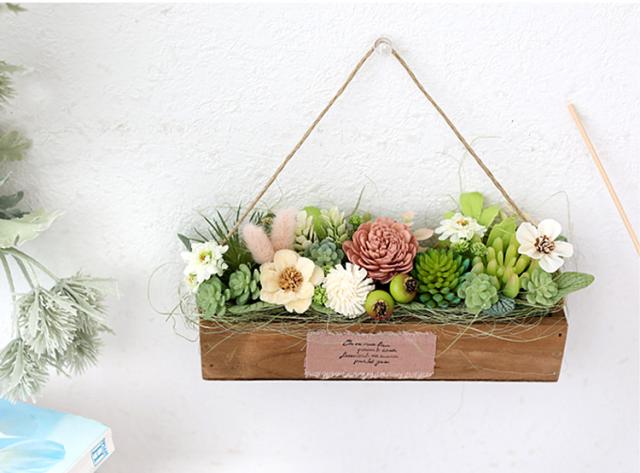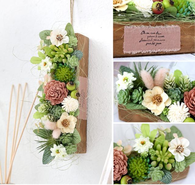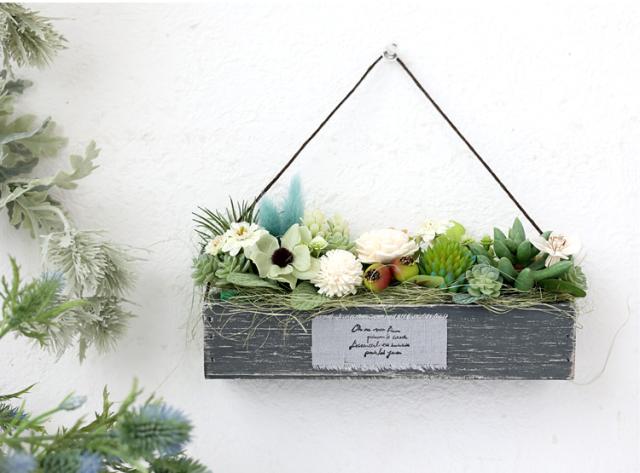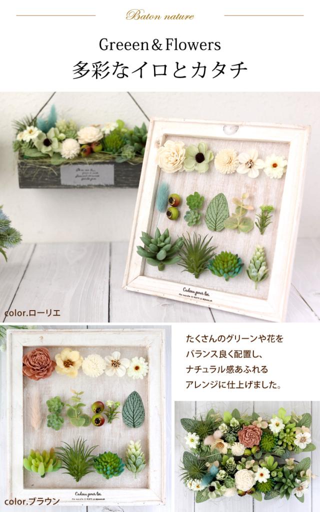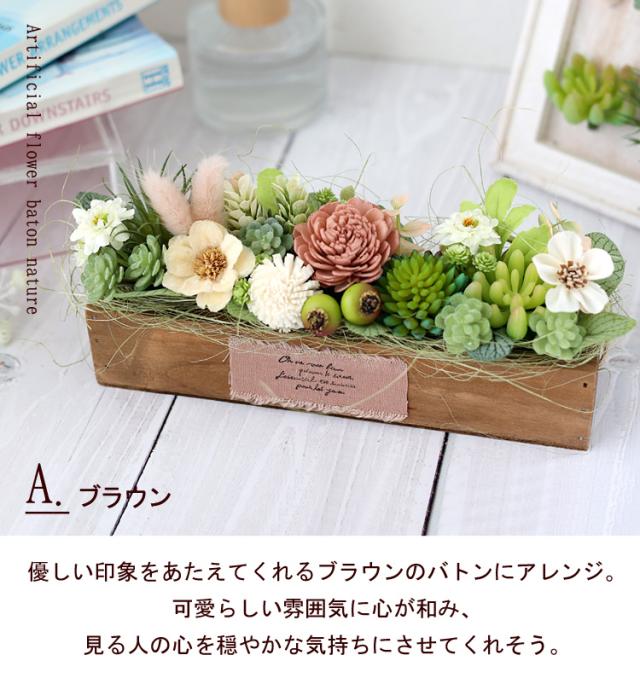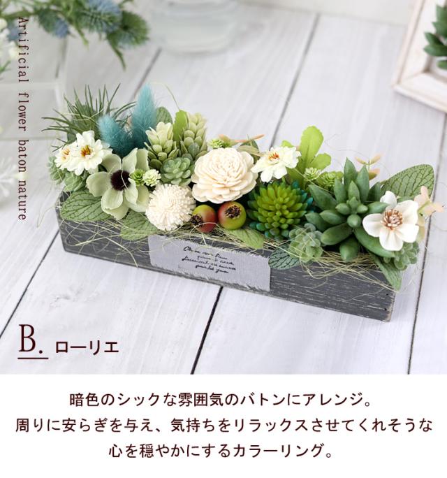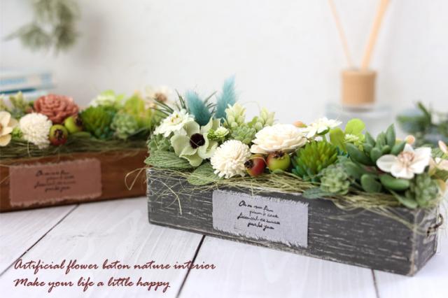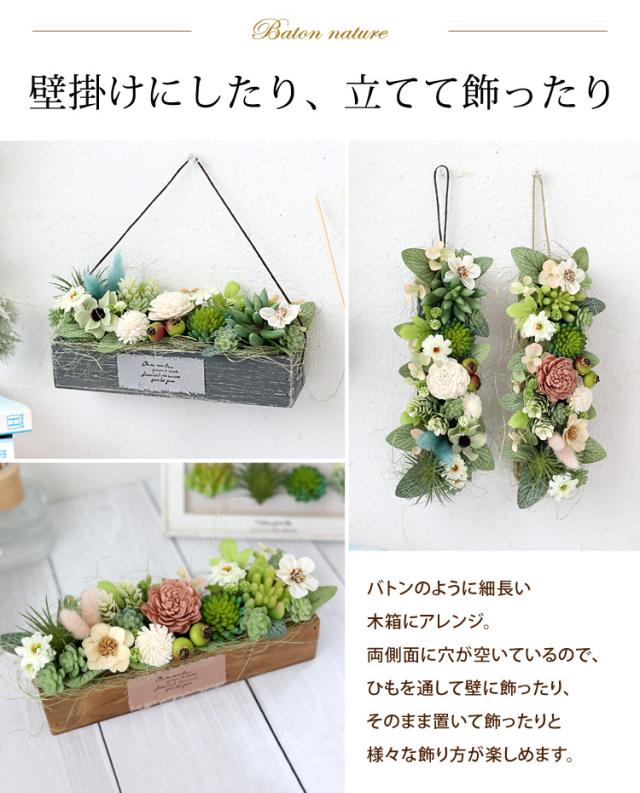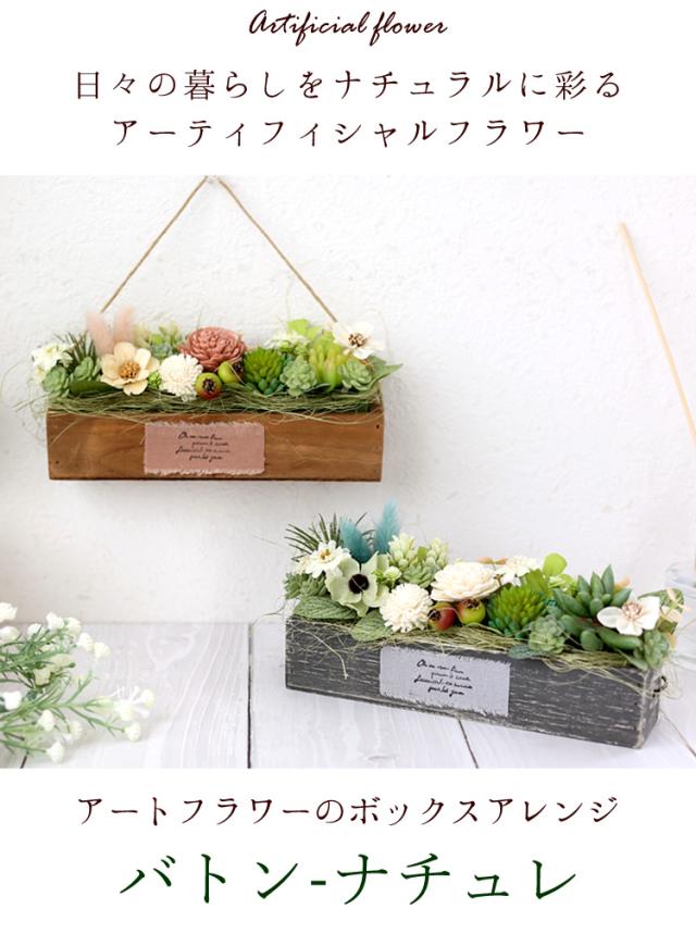 アーティフィシャルフラワー バトン-ナチュレ 選べる2カラー SU.fleur ボックスアレンジ 壁掛け 造花 多肉植物 ギフト おしゃれ インテリア 花 誕生日 プレゼント 結婚祝い 出産祝い 贈り物 花 ギフトプレゼント お歳暮 冬ギフト クリスマス いい夫婦の日 お正月 成人式