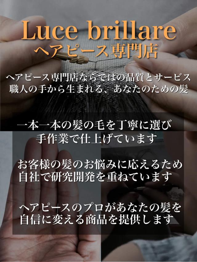 【Luce brillareとは】イタリア語でLuce (ルス)【光】 brillare(ブリラーレ)【輝く】という意味でございます。 ヘアピースを通して 【光り輝くライフスタイルを。】 をモットーに幅広い方々から支持して頂けるようなライフスタイルをご提案致します。