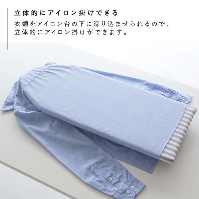衣類をアイロン台の下に滑り込ませられるので、立体的にアイロン掛けができます。