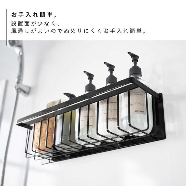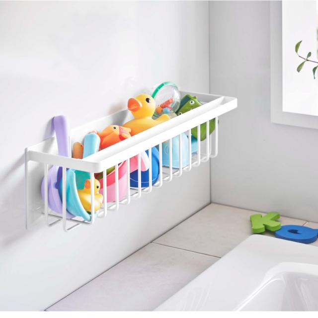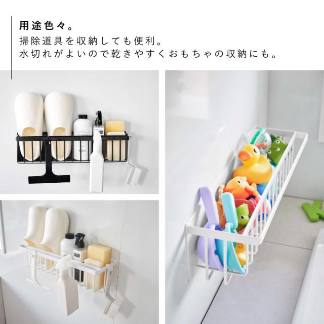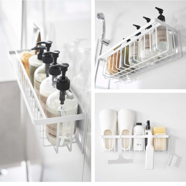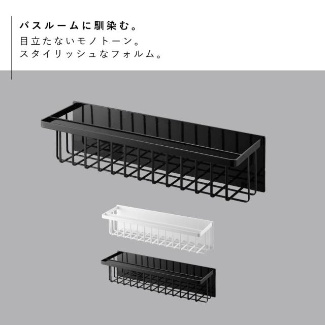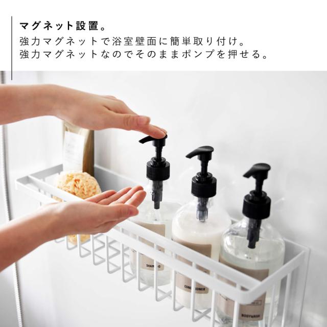 浴室壁面に強力マグネットで取り付けられる奥行スリムなワイドバスケット。設置面が少なく、風通しがよいのでぬめりにくくお手入れ簡単。いつでも清潔に保てます。