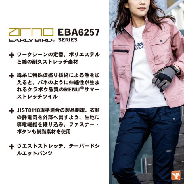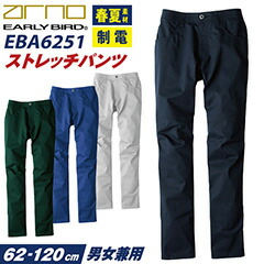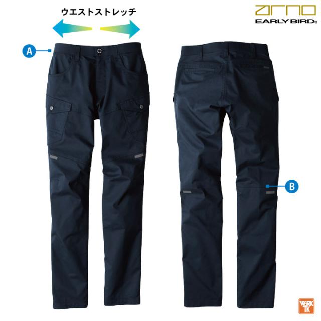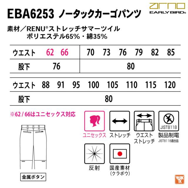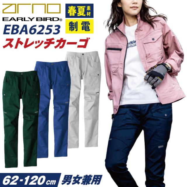 EARLY BIRD EBA6253 ノータックカーゴパンツ 男女兼用 62 66 70 73 76 79 82 85 88 91 95 100 105 110 115 120