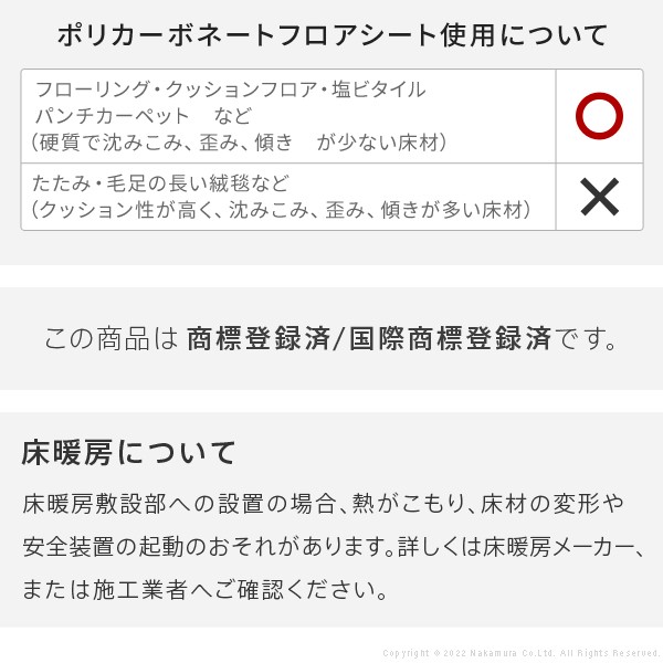WALLインテリアテレビスタンドV3ハイタイプコーナー兼用自立ベース専用 ポリカーボネートフロアシート ■仕様 本体:ポリカーボネート ◎完成品 ■サイズ:幅77x奥行22.5x厚さ0.2cm ■重量:約0.3kg ※床暖房について 床暖房敷設部への設置の場合、熱がこもり、床材の変形や安全装置の起動のおそれがあります。詳しくは床暖房メーカー、または施工業者へご確認ください。 ※記載は商品仕様の一部です。仕様説明不足等の理由での返品はできません。特に適合等は必ずご確認ください。