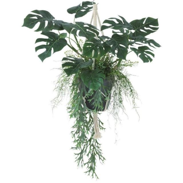 人工観葉植物 モンステラ MIX ハンキング ポット付き 高さ55×長さ100(総全長約110)cm (P116-99531) (代引き不可) インテリアグリーン フェイクグリーン