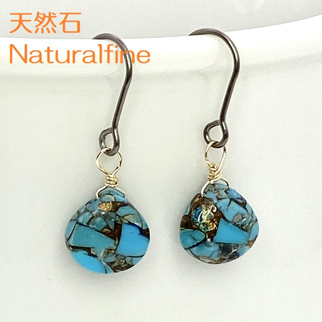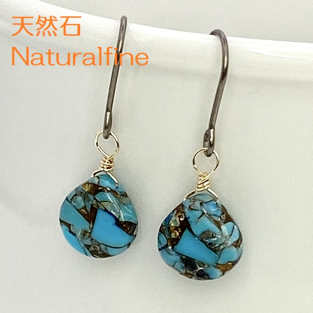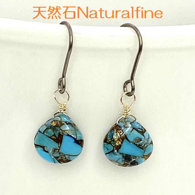 こちらは、天然石のターコイズとコッパー(銅)のピアス(イヤリング)です。