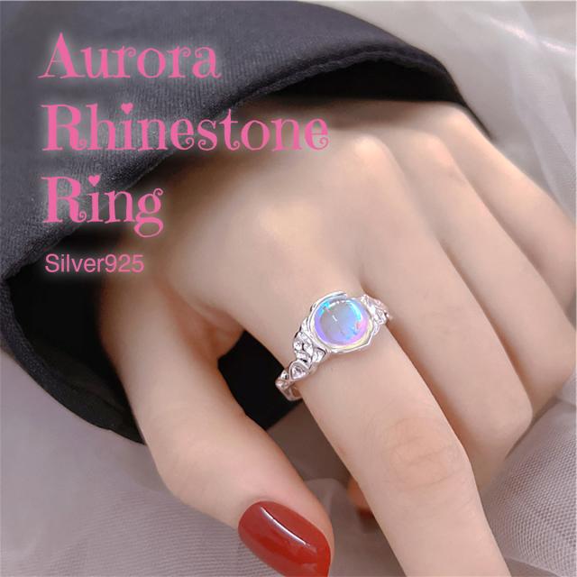 オーロラ ラインストーン シルバー リング 指輪 Silver925 純銀 シルバー アクセサリー ジュエリー 銀 レインボー