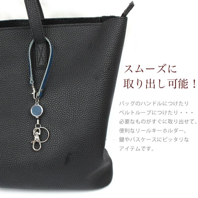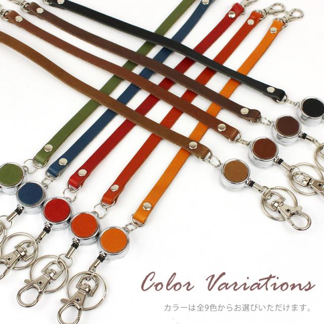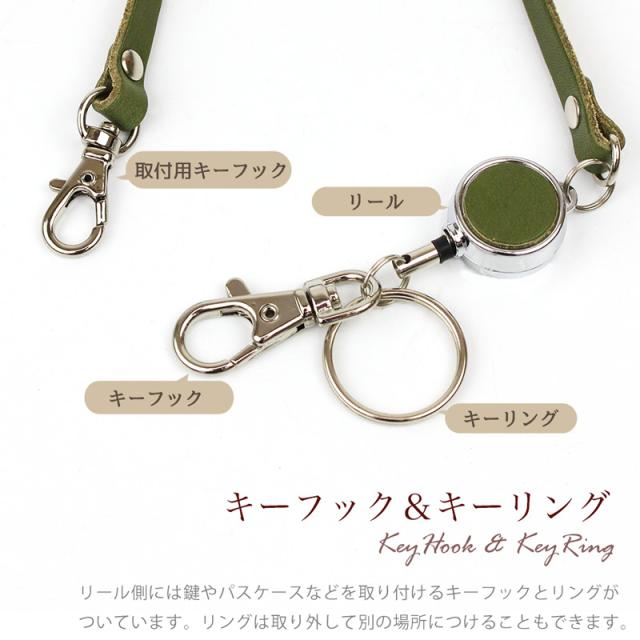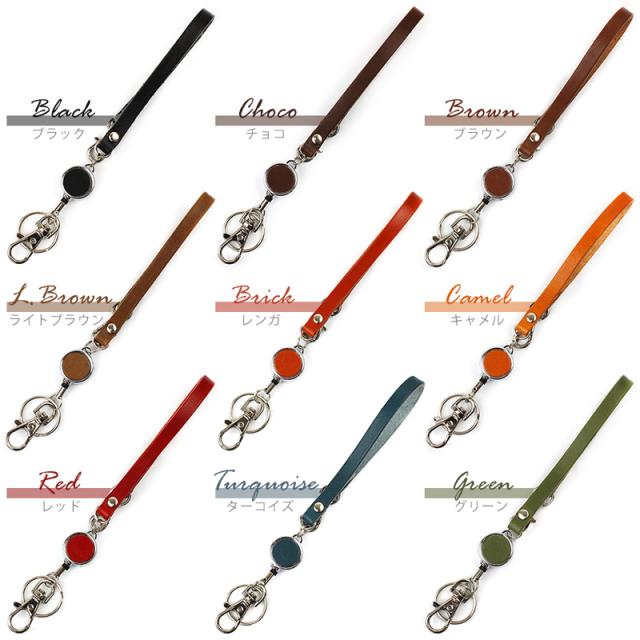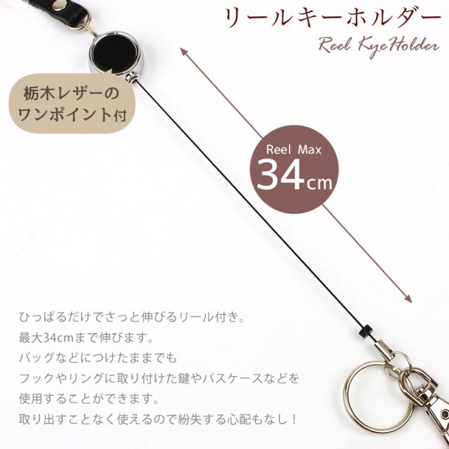リール キーホルダー 栃木レザー 本革 コードリール付きキーリング リールホルダー リール付きストラップ