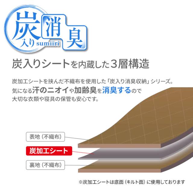 気になる汗のニオイ・加齢臭を消臭!炭加工シートを挟んだ3層構造収納ケースで、気になる汗のニオイ・加齢臭を消臭します。