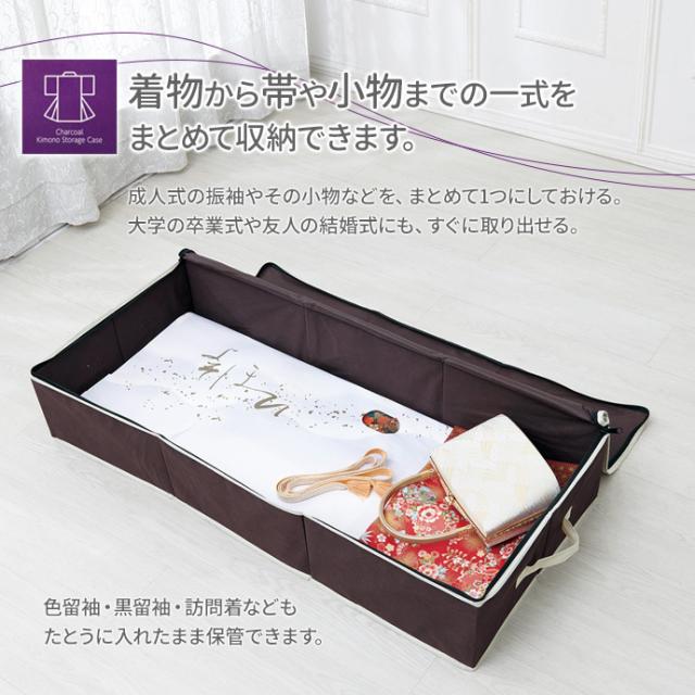 着物ケース 炭入り消臭 着物一式収納ケース | 着物 収納 ケース 保管 振袖 浴衣 訪問着 留袖 和服 きもの 浴衣 和装小物 襦袢 着物入れ 着物 しまう ソフトケース 収納ボックス 着物 持ち運び