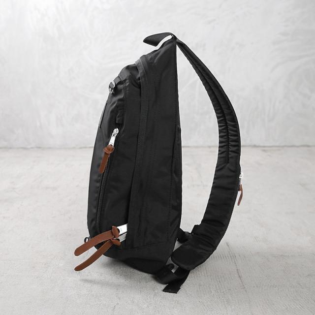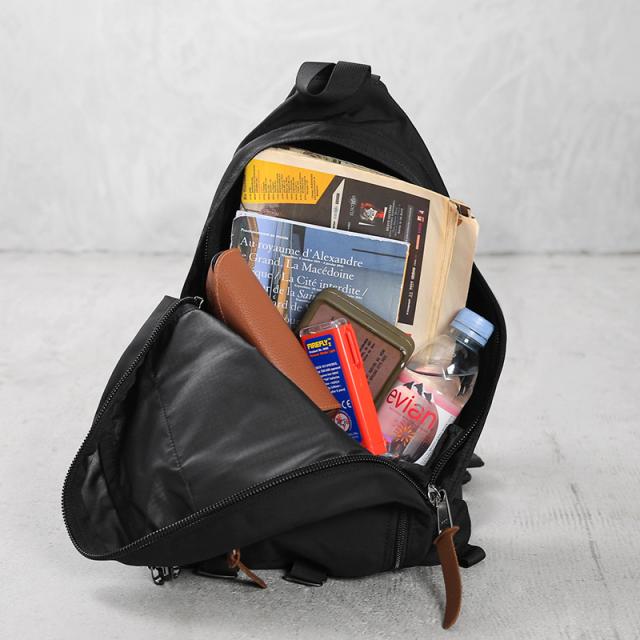 ティアドロップ型のワンショルダーデザインは、背面から正面に回した時にアクセスしやすいようにポケットがレイアウトされ、開口部も大きめのジッパー開閉なのでストレスなくスムーズに出し入れが行えます。フロントのジッパーポケットは中にメッシュで仕切りがついているので、小物などが中でバラける心配もありません。また、ショルダーハーネスにスタビライザーストラップを取り付けることで、バッグが安定し自転車乗る際や走ったりするときも安心です。