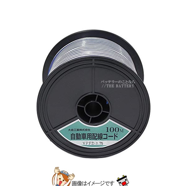 大自工業 メルテック VFFD0.75-BL/WH-100 自動車配線ダブルコード(平行線)VFFD0.75平方mm青/白100mスプール巻