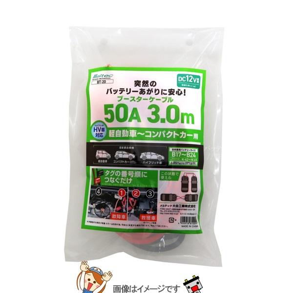 大自工業 メルテック BT-20 ブースターケーブル HV車対応〜軽自動車用 DC12V・50A 3m
